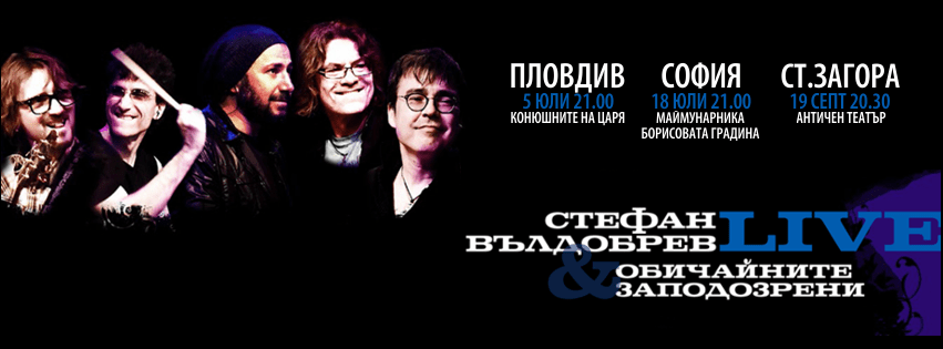 СТЕФАН ВЪЛДОБРЕВ и Обичайните заподозрени Стефан Вълдобрев, Иван Лечев, Мирослав Иванов, Веселин Веселинов-Еко и Стоян Янкулов-Стунджи концерта в Стара Загора. 19 септември 2014 19:00 часа Стара Загора Споделяне:Още Email a link to a friend(Отваря се в нов прозорец) Имейл Отпечатване(Отваря се в нов прозорец) Отпечатване TweetХаресвам Зареждане... Вашият коментар Отказ Δ Този сайт използва Akismet за намаляване на спама. Научете как се обработват данните ви за коментари.