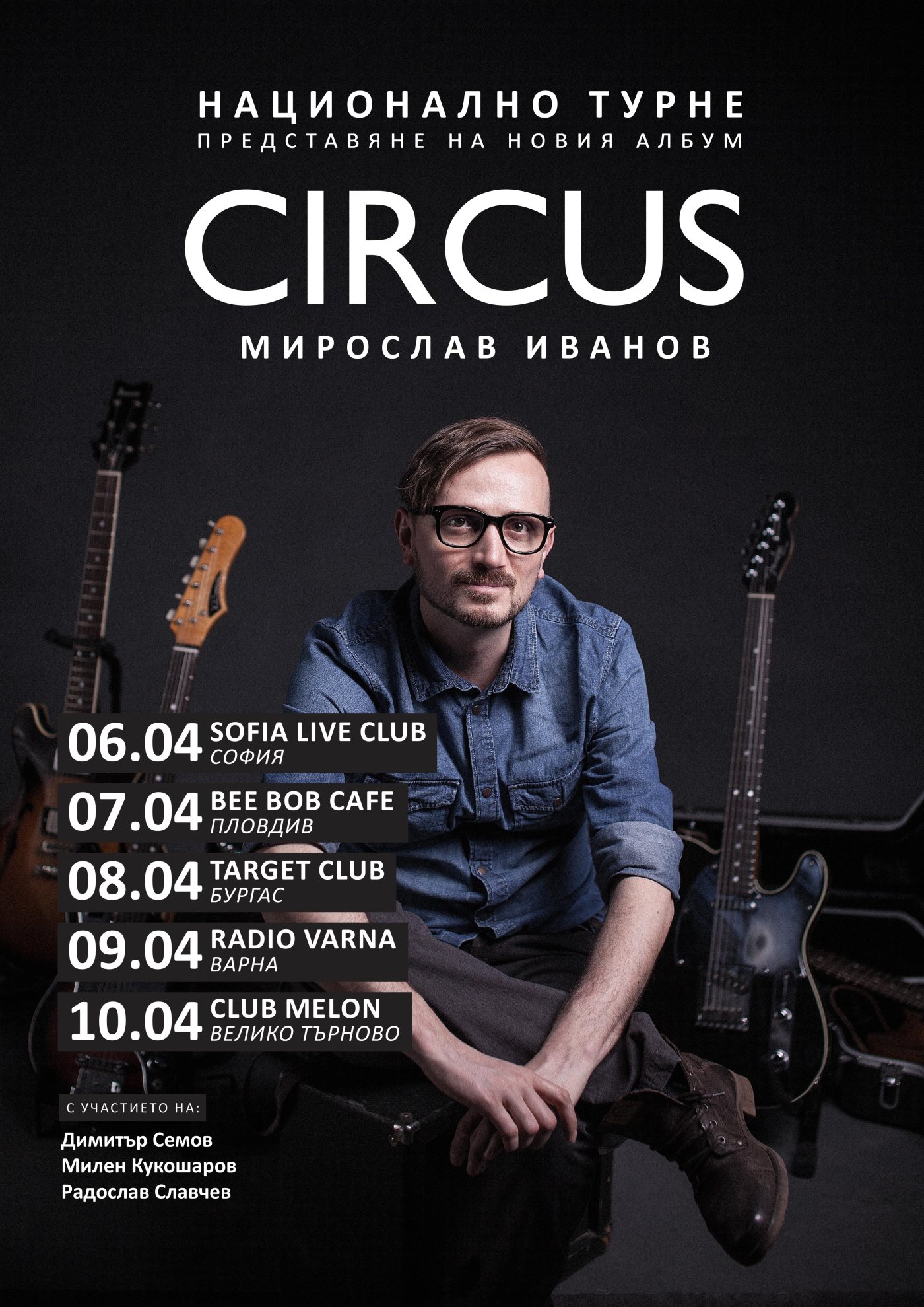 Най – търсеният китарист в родния поп, рок и джаз бранш Мирослва Иванов, издаде своя втори самостоятелен албум „CIRCUS”. Новият албум ще бъде представен пред публика в началото на месец април в София, Пловдив, Бургас, Варна и Велико Търново.