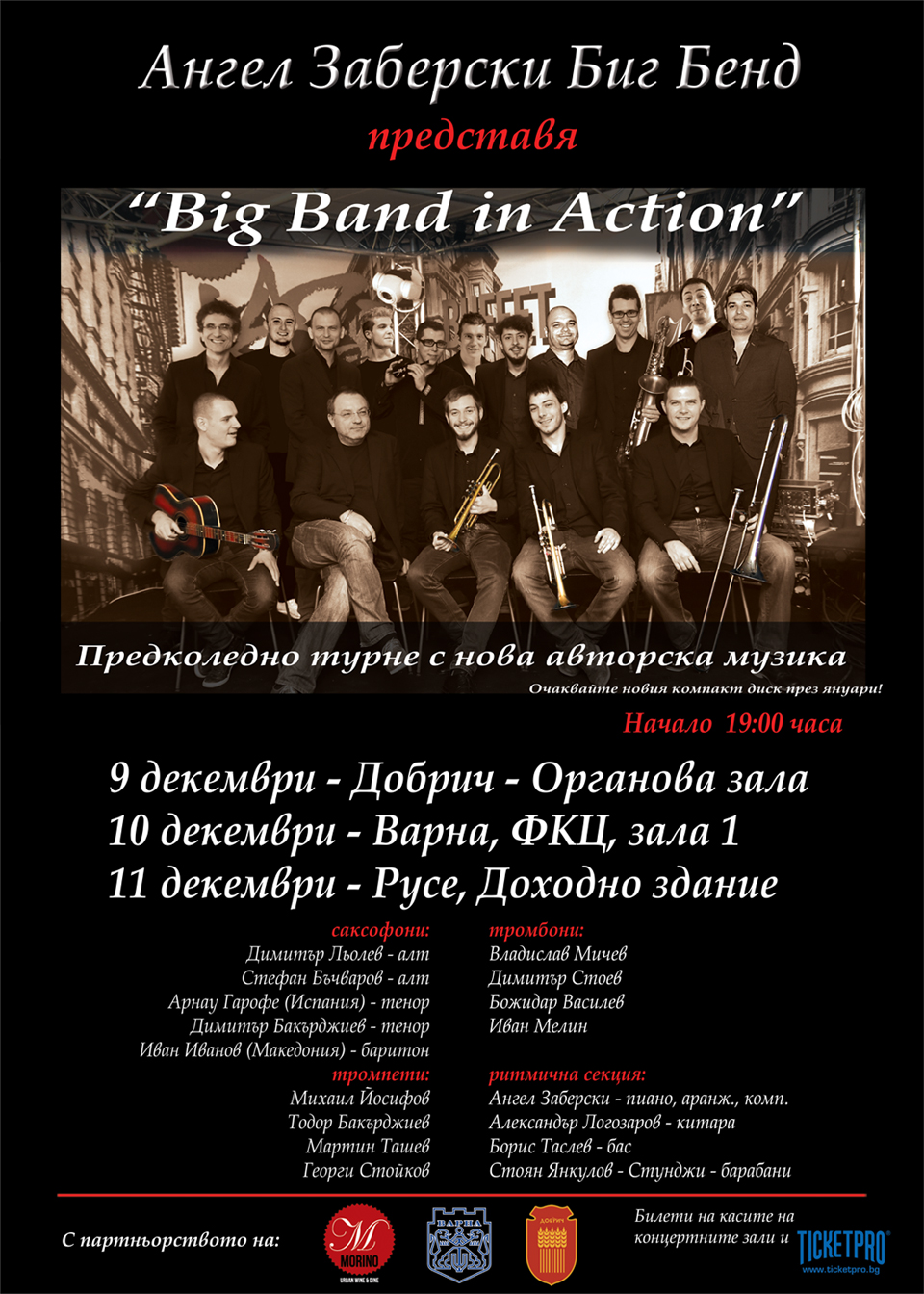 Турнето е под надслов “Big Band in Action”и ще бъде предколедния поздрав на музикантите от бенда към жителите на трите града. След записите на новия двоен албум от същата концертна програма, биг бенда ще направи концерт и в София и останалите градове.